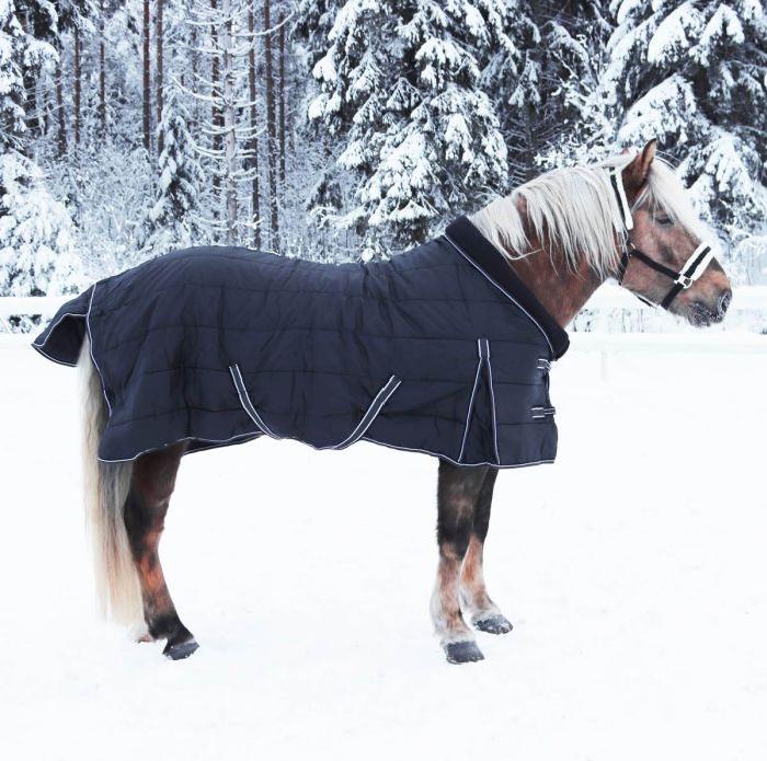 Stalldekken i klassisk stil med 300gr. isolering. Topp kvalitetet til en bra pris. Består av Rip-stop utvendig stoff, samt termo-limt polyester som isolering og pustende nylon på innsiden. Dette gjør overflatene glatte og sørger for at flis ikke fester seg.