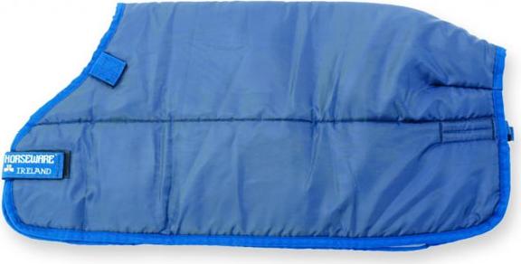 Populært regndekken med fleecefor, 2 kryssgjorter, elastiske beinstropper og haleflapp. Polstring på nakke, bogsplitt samt stillbar i front. Kvalitetsdekken til en rimelig pris. Leveres i svart med marine og hvit kantband.